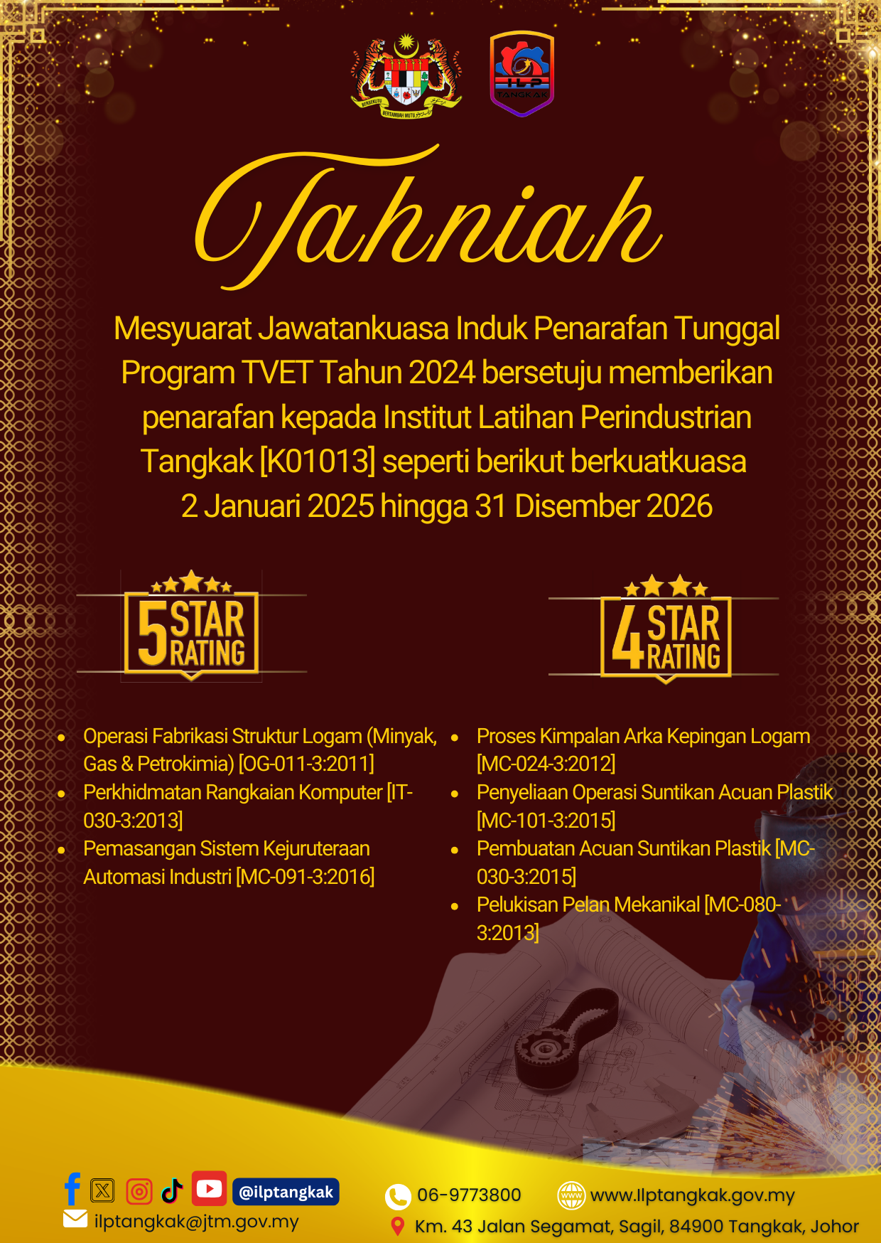 January 17, 2025 - The ceremony was completed by YBrs. Ts. Mohd Nazri Bin Salim, Deputy Director of ILP Tangkak Training and was also attended by officers, lecturers and facilitators.