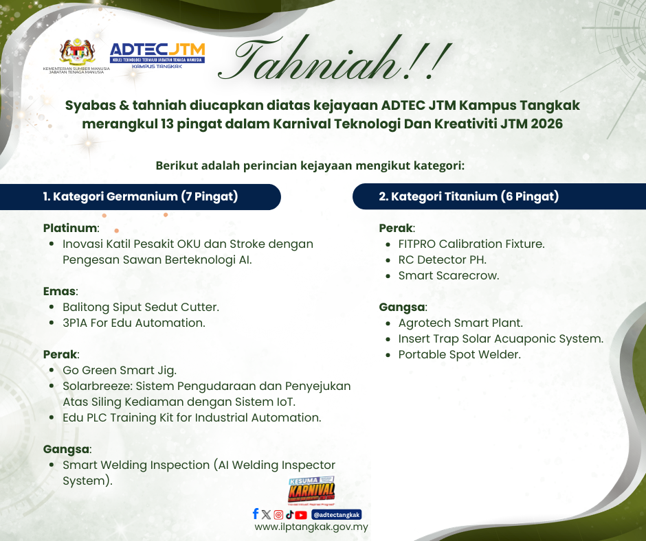 11-12 February 2026 - Congratulations to ADTEC JTM Tangkak staff and participants on their remarkable success at CITEC 2026 in ADTEC JTM Taiping Campus.