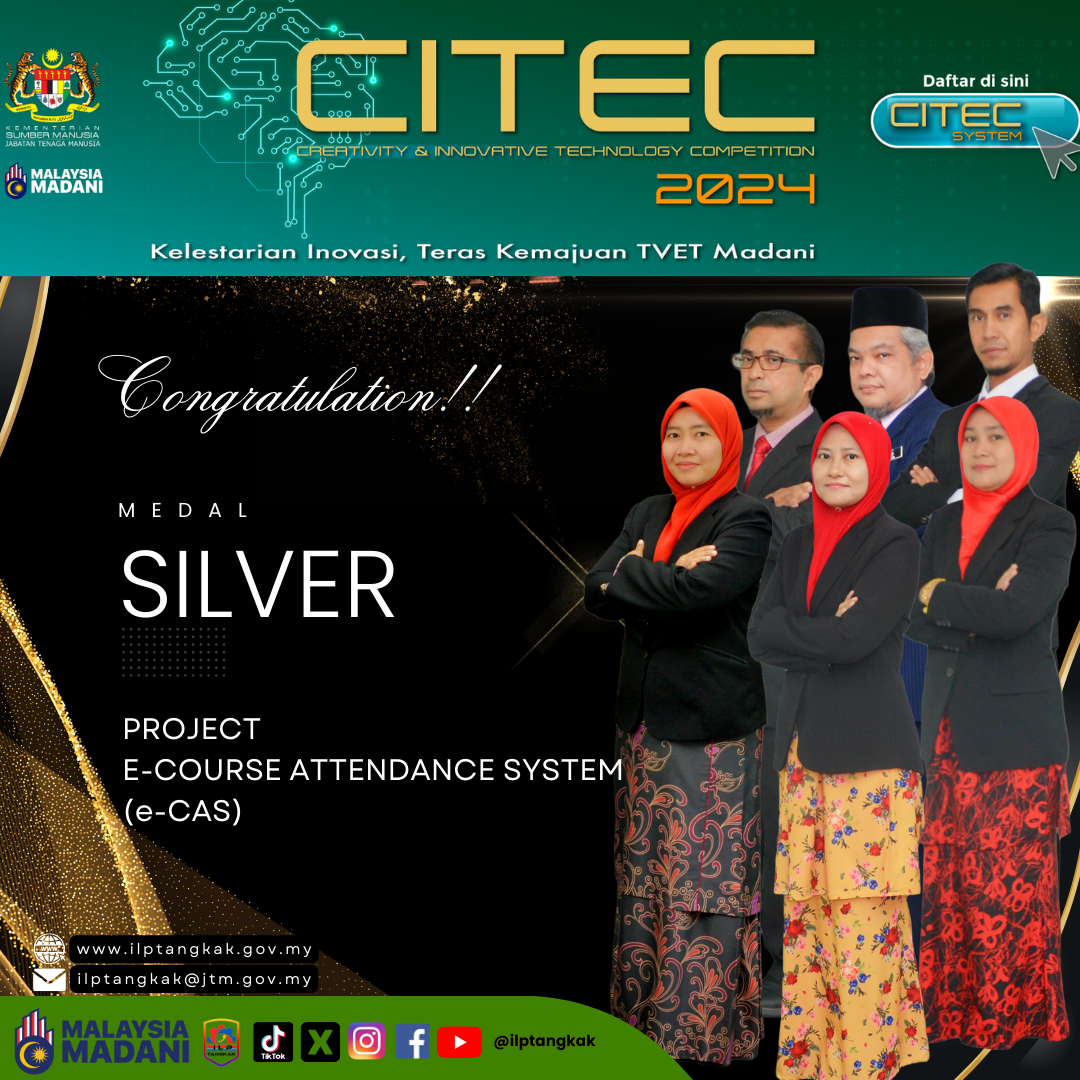 Silver Medal - Project e-Course Attendance System (e-CAS) | Creativity & Innovative Technology Competition (Citec) 2024