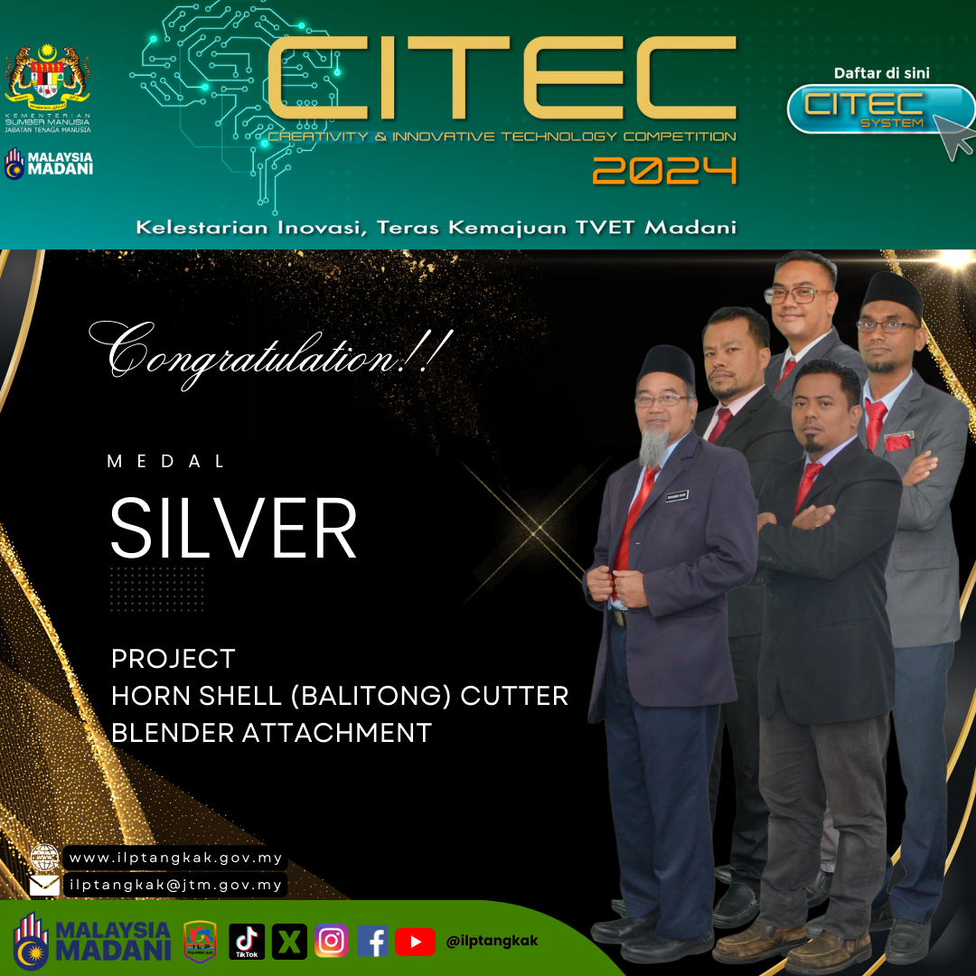 Silver Medal - Project Horn Shell (Balitong) Cutter Blender Attachment | Creativity & Innovative Technology Competition (Citec) 2024