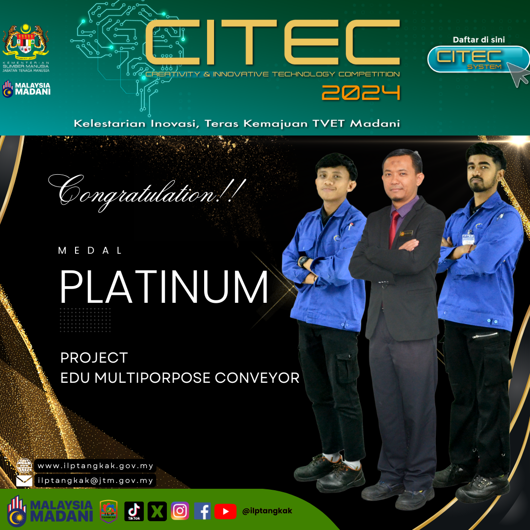 Medal Platinum - Project EDU Multipurpose Conveyor | Creativity & Innovative Technology Competition (Citec) 2024