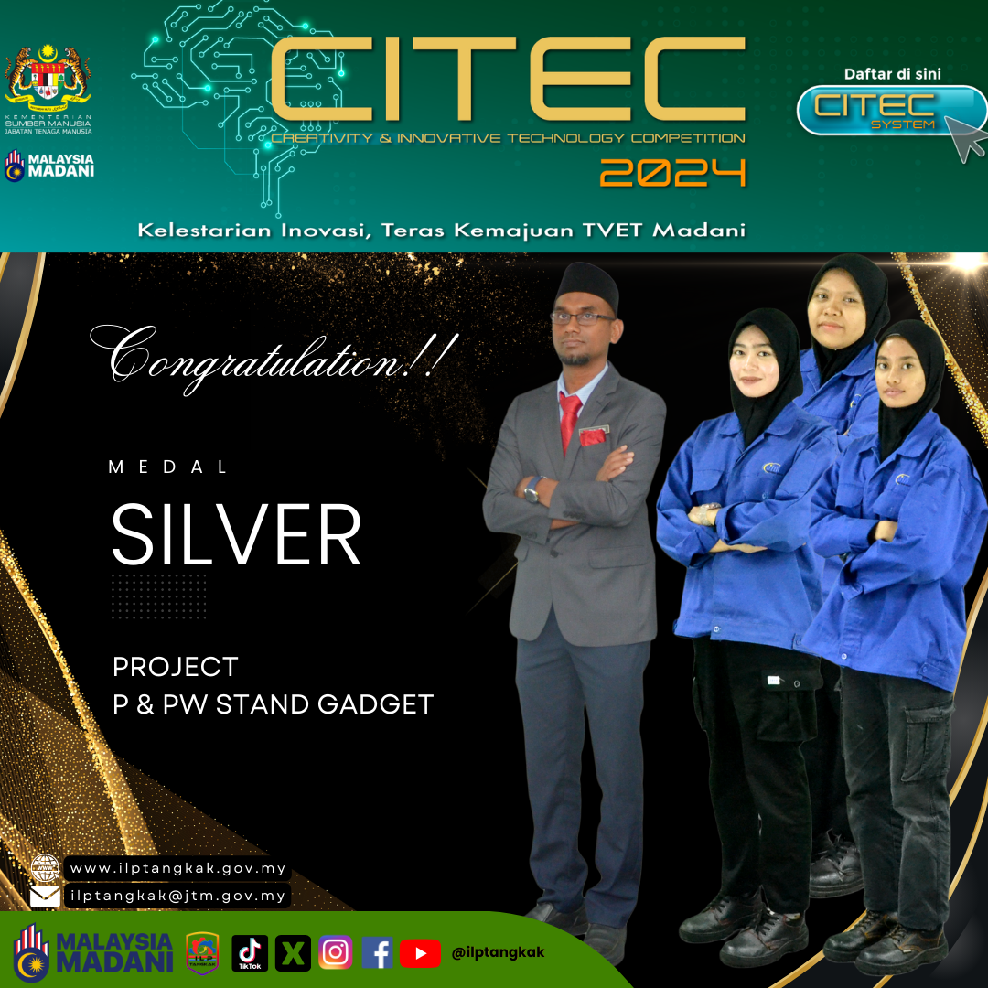 Silver Medal - Project P & PW Stand Gadget | Creativity & Innovative Technology Competition (Citec) 2024