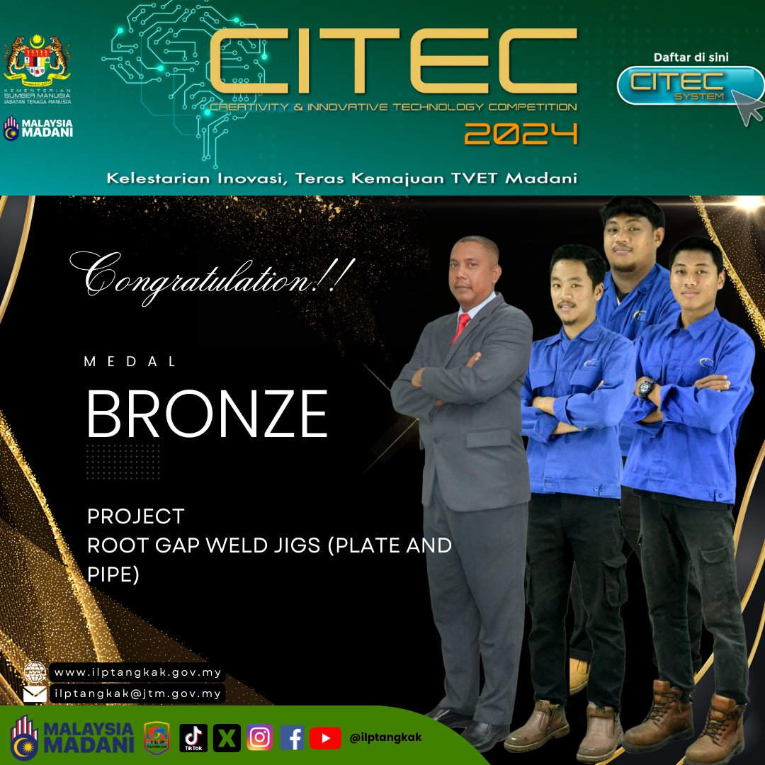 Bronze Medal - Project Root Gap Weld Jigs (Plate and Pipe) | Creativity & Innovative Technology Competition (Citec) 2024