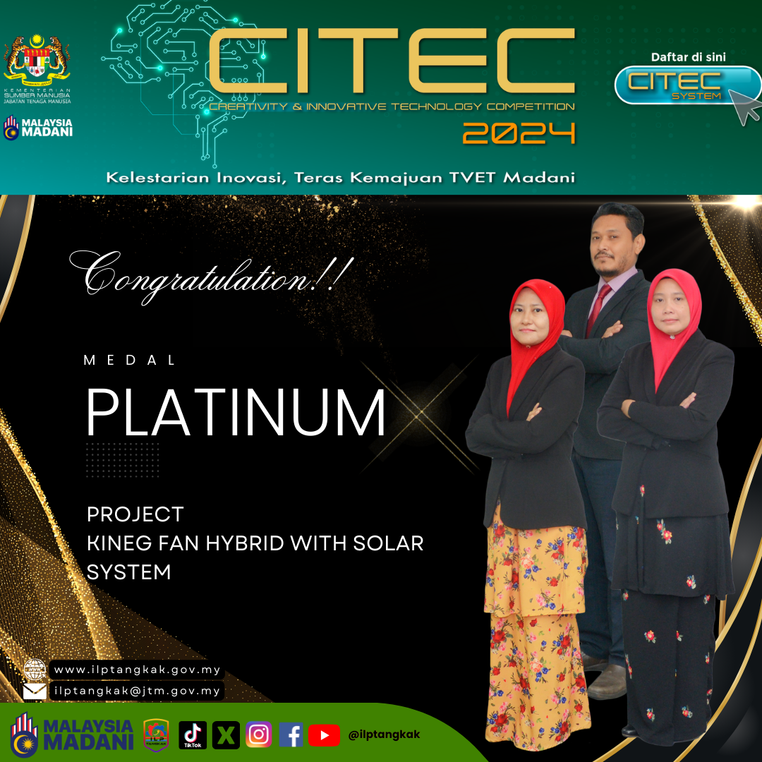 Platinum Medal - Project Kineg Fan Hybrid With Solar System | Creativity & Innovative Technology Competition (Citec) 2024