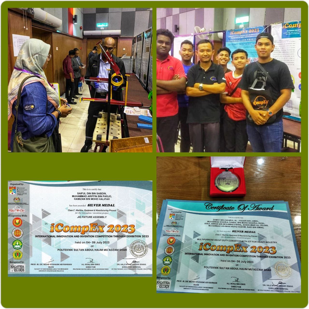 Projek Jig Fixture Assembly dari Bengkel Teknologi Fabrikasi Logam dan Projek Multipurpose Heavy Duty Convenyor With IOT for Heavy Industry dari Bengkel Teknologi Mekatronik telah dinobatkan Anugerah Pingat Perak dalam penyertaan tersebut.