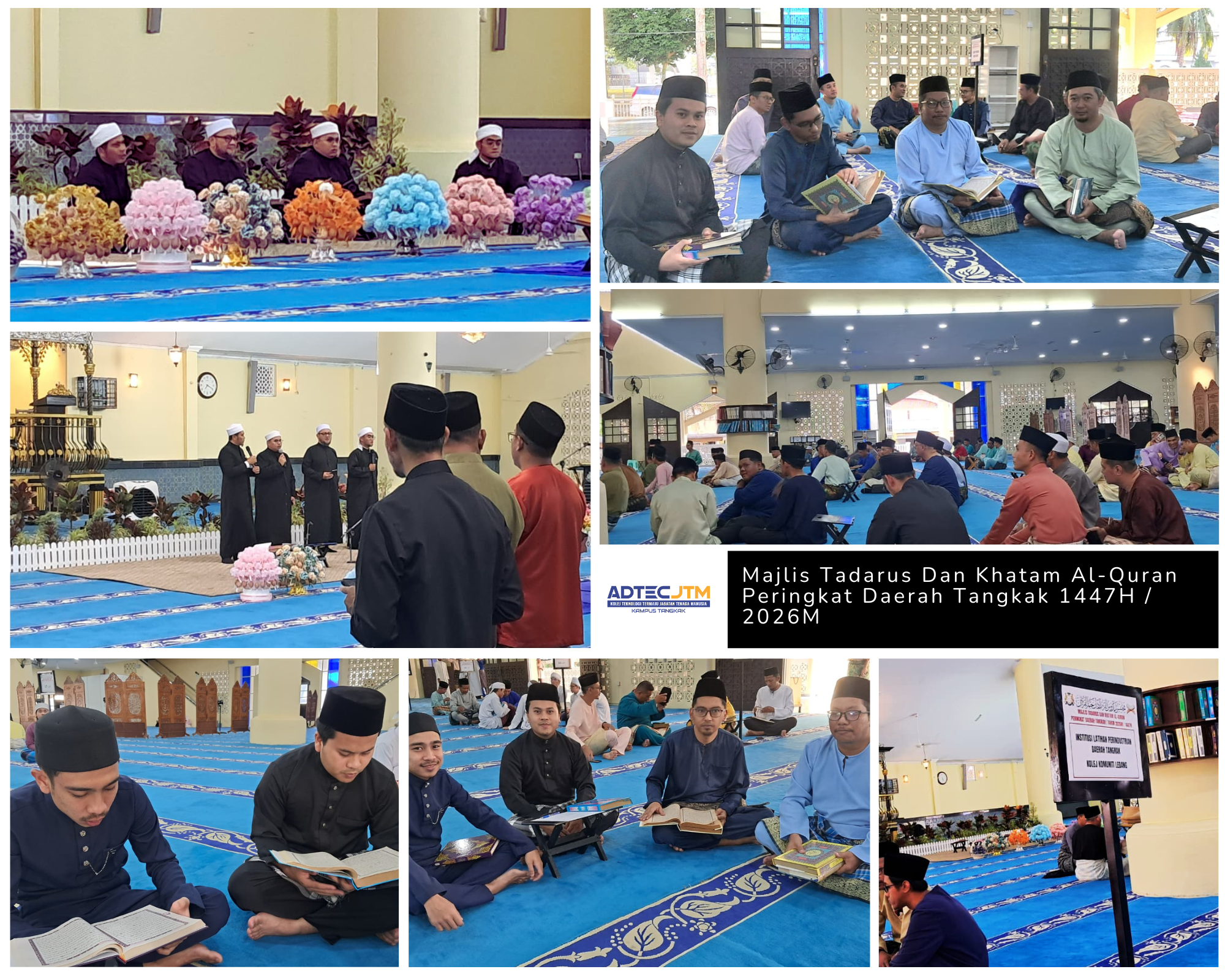 • Sesi Tadarus Al-Quran: ADTEC JTM Kampus Tangkak telah diamanahkan bagi bacaan Juzuk 8 mengikut pembahagian kumpulan yang ditetapkan.
