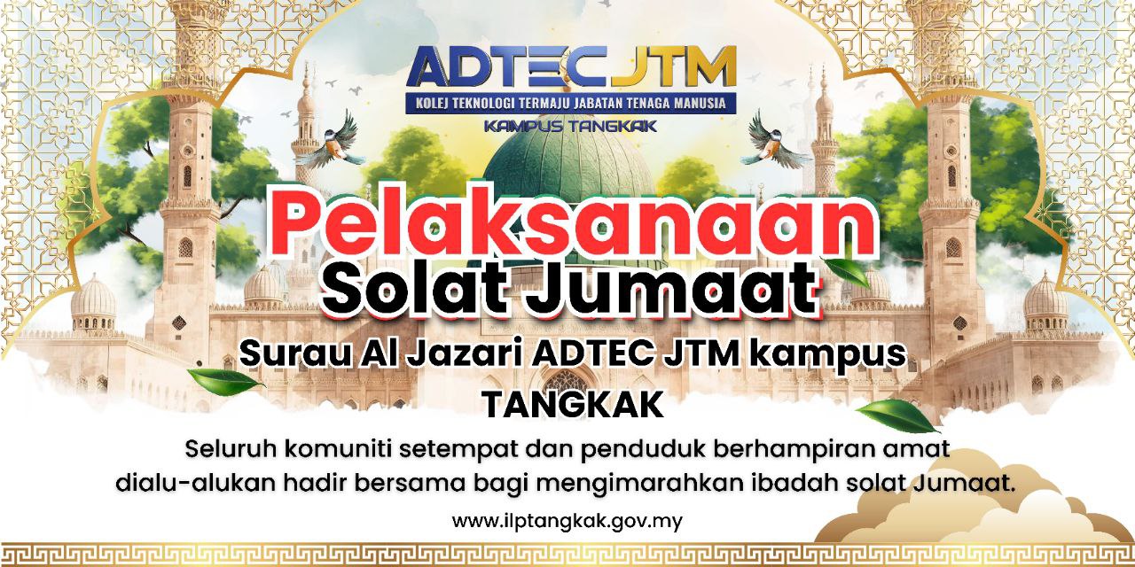 Sukacita dimaklumkan bahawa ADTEC JTM KampusTangkak telah menerima kelulusan rasmi bagi pelaksanaan Solat Jumaat di Surau Al-Jazari berkuat kuasa mulai 13 Februari 2026.