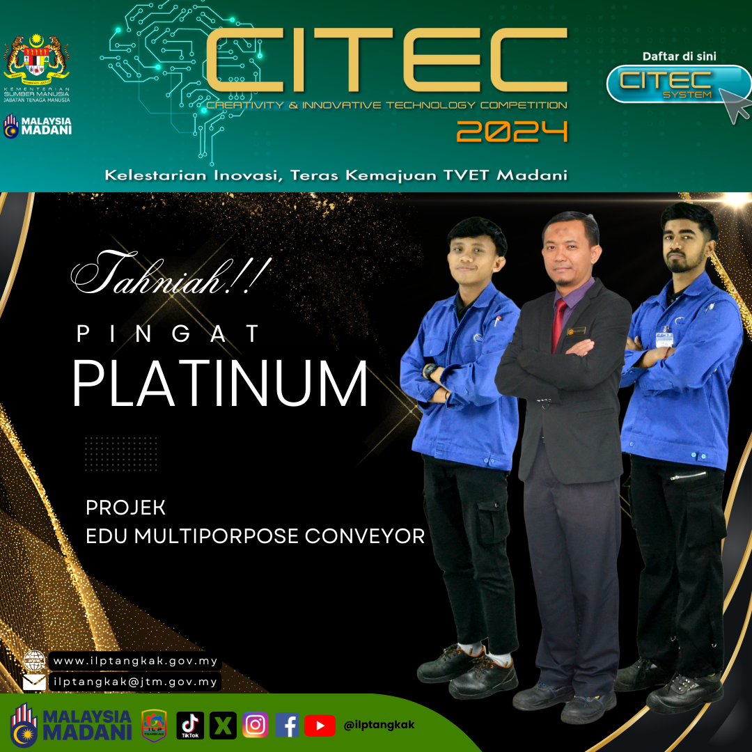 Pingat Platinum - Projek EDU MULTIPORPOSE CONVEYOR Pertandingan Kreativiti dan Inovasi Citec 2024