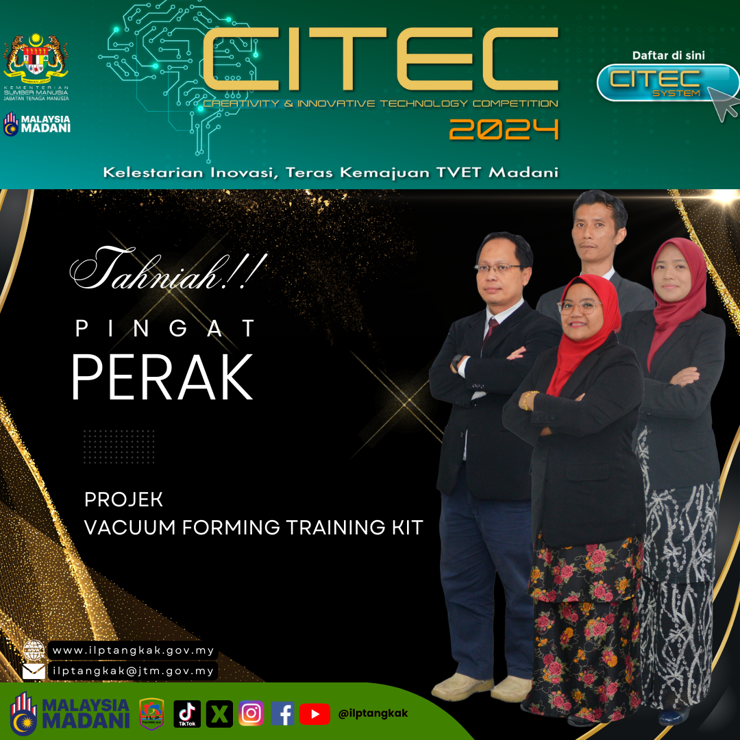Pingat Perak - Projek Vacuum forming training kit Pertandingan Kreativiti dan Inovasi Citec 2024