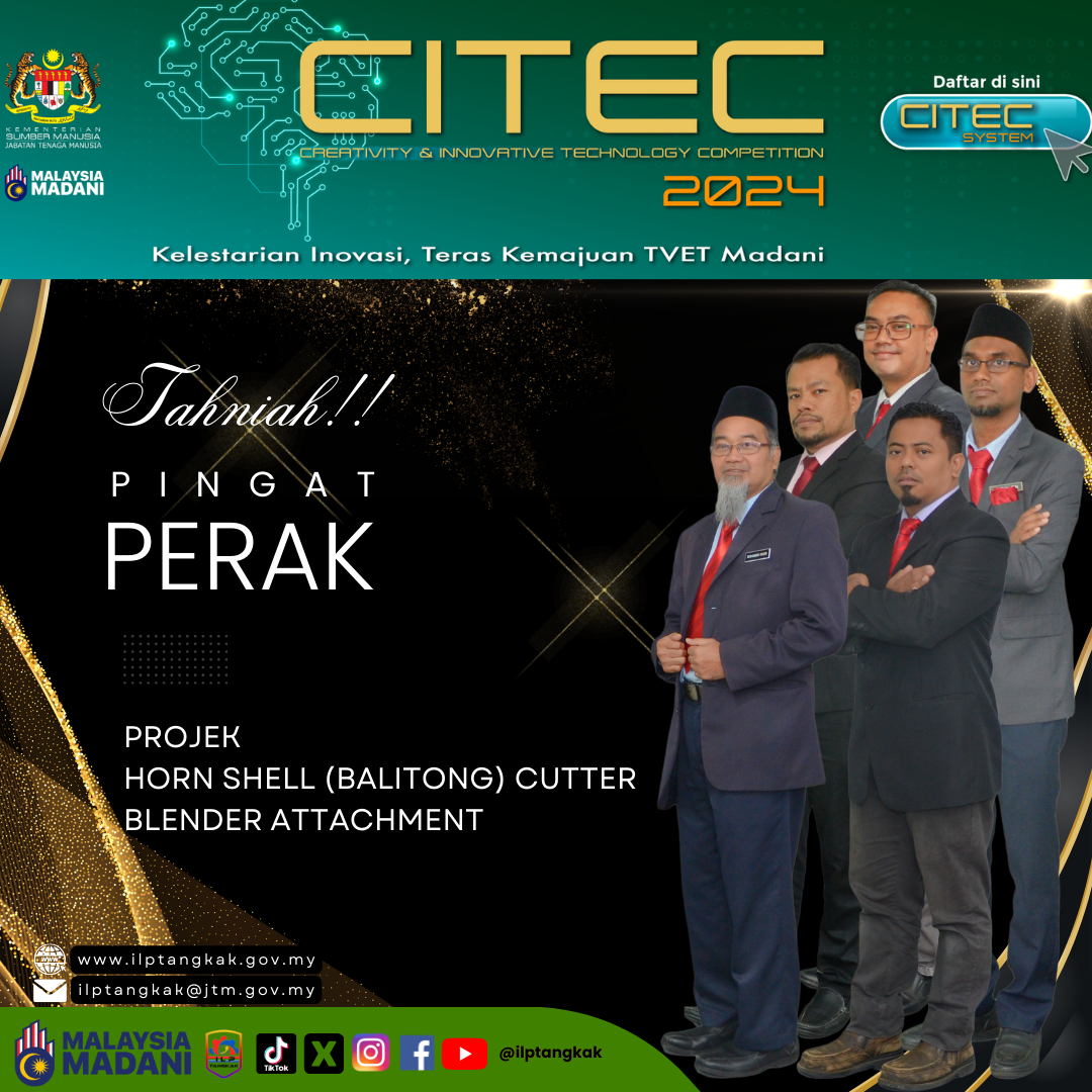 Pingat Perak - Projek Horn Shell (Balitong) cutter blender attachment Pertandingan Kreativiti dan Inovasi Citec 2024