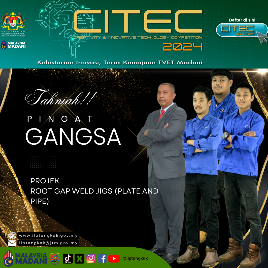 Pingat Gangsa - Projek Root Gap Weld Jigs (Plate and Pipe) Pertandingan Kreativiti dan Inovasi Citec 2024