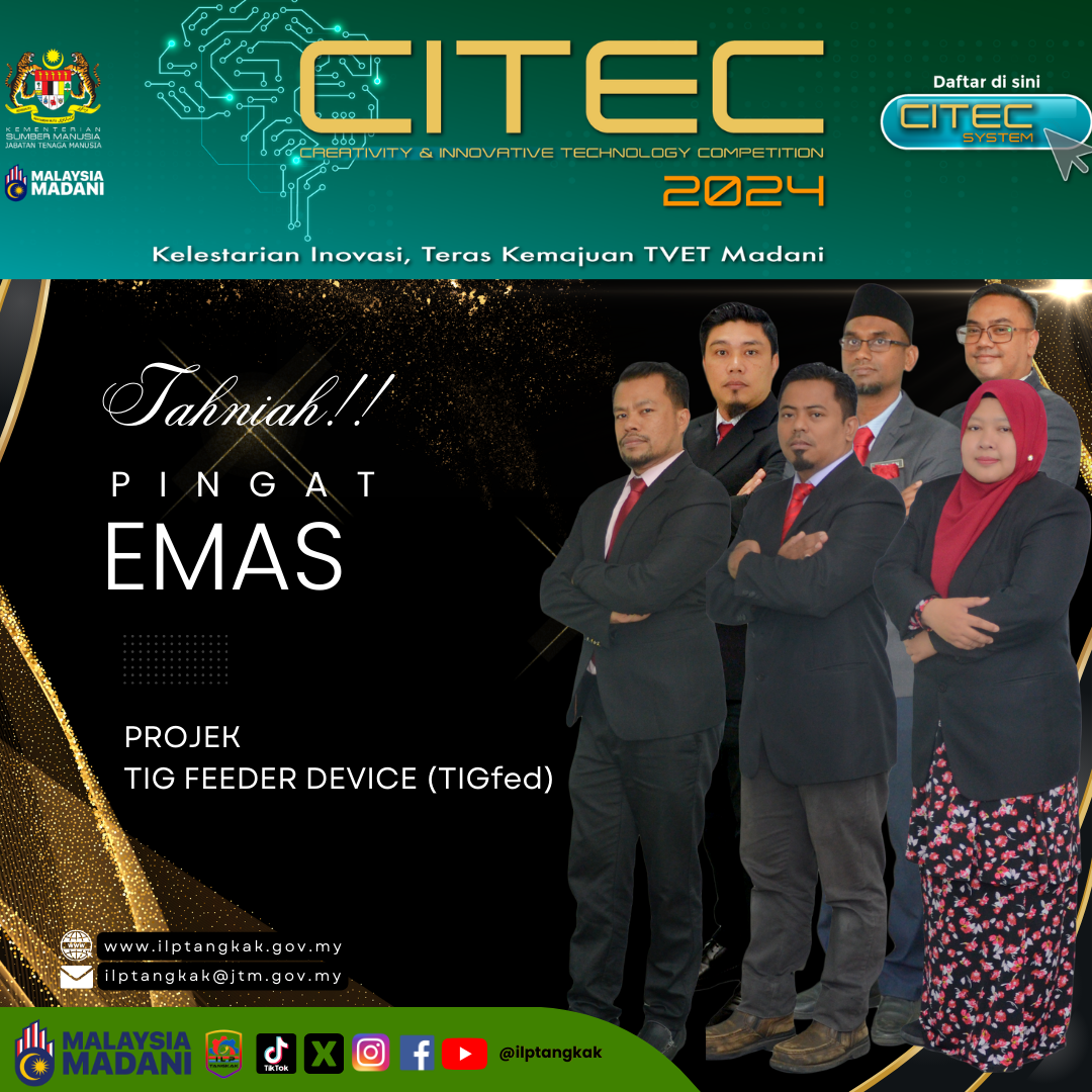 Pingat Emas - Projek TIG FEEDER DEVICE (TIGfed) Pertandingan Kreativiti dan Inovasi Citec 2024