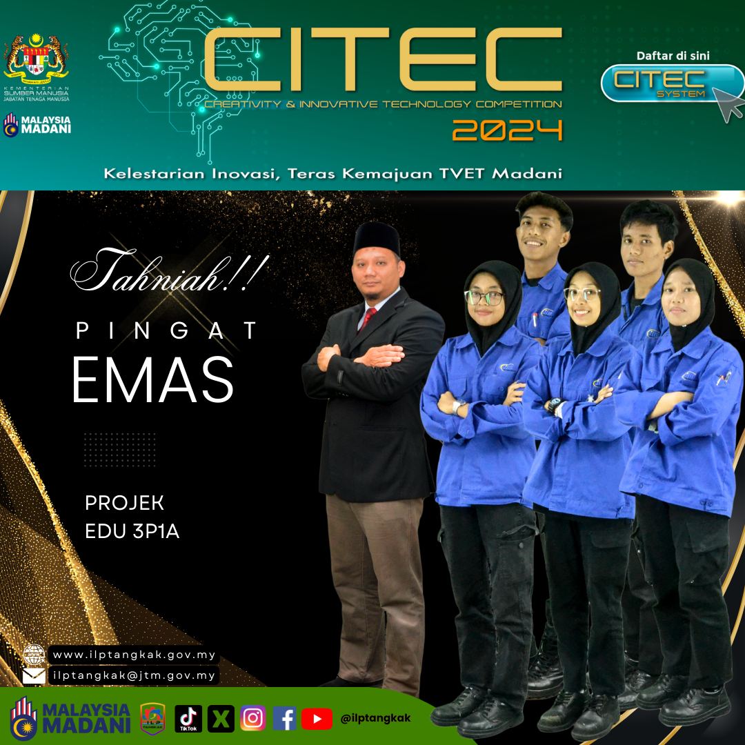 Pingat Emas - Projek EDU 3P1A Pertandingan Kreativiti dan Inovasi Citec 2024