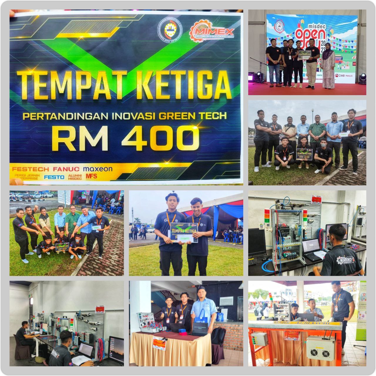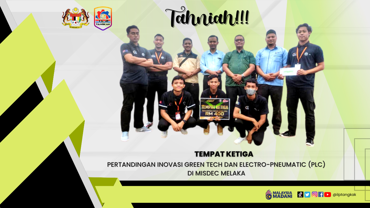 10 Oktober 2023 - Teknologi Mekatronik ILP Tangkak berjaya mendapat tempat ketiga dalam Pertandingan Inovasi Green Tech dan Electro-Pneumatic (PLC) di MISDEC Melaka.