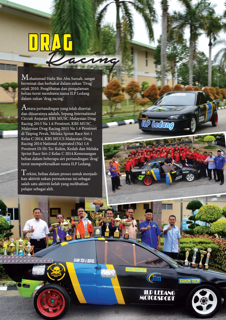 Pasukan ILP Ledang Motorsports kerana mendapat tempat kedua dalam Pertandingan Drag Racing Championship kategori 1.6 Open di Kampung Gajah Perak pada 20 April 2014
