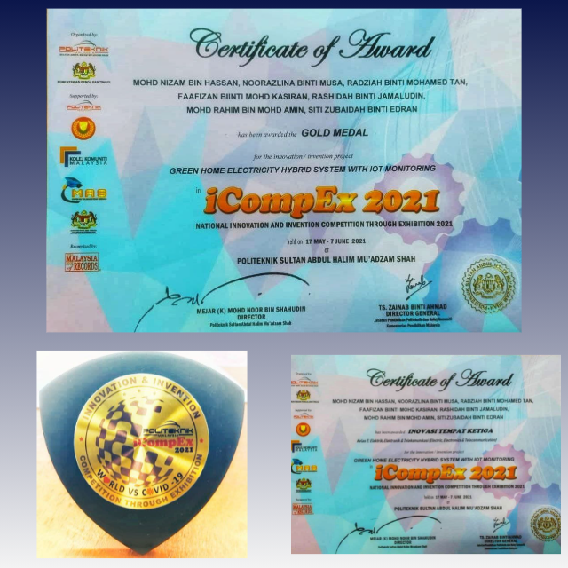 Pingat Emas - Projek Inovasi Green Home Electricity Hybrid System With Iot Monitoring - Teknologi Komputer (Rangkaian) -2021
