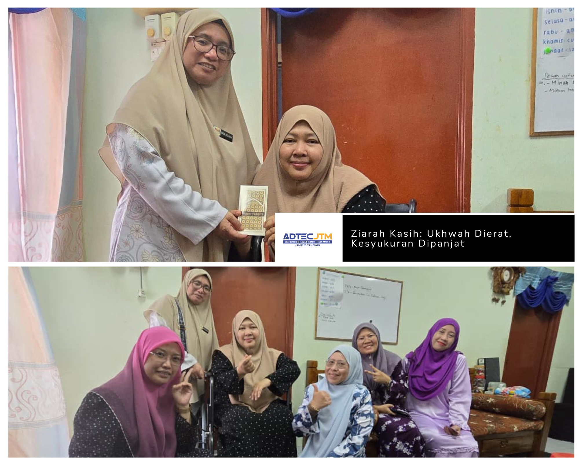 13 April 2026 - Satu kunjungan ukhwah telah diadakan oleh warga ADTEC Tangkak ke kediaman Puan Nor Rafizah Binti Zakaria yang baru-baru ini terlibat dalam musibah kemalangan jalan raya. Kunjungan yang penuh bermakna ini diketuai oleh Ts. Hjh. Nor Azlina Binti Ismail, Timbalan Pengarah (Pengurusan Latihan) ADTEC Tangkak, bertujuan untuk menziarahi rakan setugas serta memberikan sokongan moral buat beliau sekeluarga dalam menempuh waktu pemulihan ini.