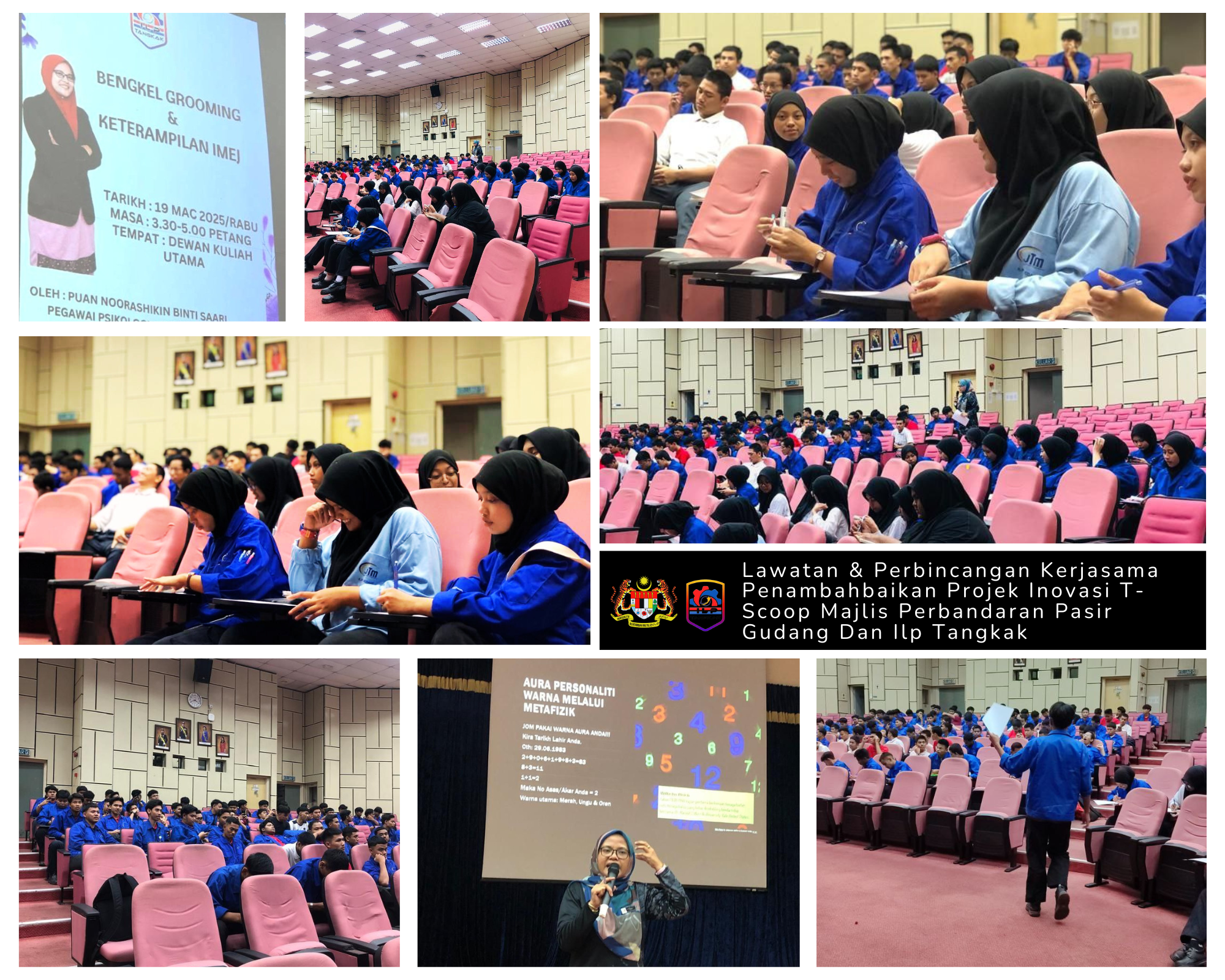 19 Mac 2025 - Unit Pengurusan Psikologi telah melaksanakan Program Grooming dan Keterampilan Diri untuk pelajar semester 1 dan 2 bertempat di Dewan Kuliah Utama, ILP Tangkak.untuk memberi pendedahan awal kepada para pelajar bagi memastikan sentiasa menjaga keterampilan diri semasa dan selepas keluar dari institut terutama sekali untuk persediaan menghadiri sesi temuduga bersama pihak industri.
