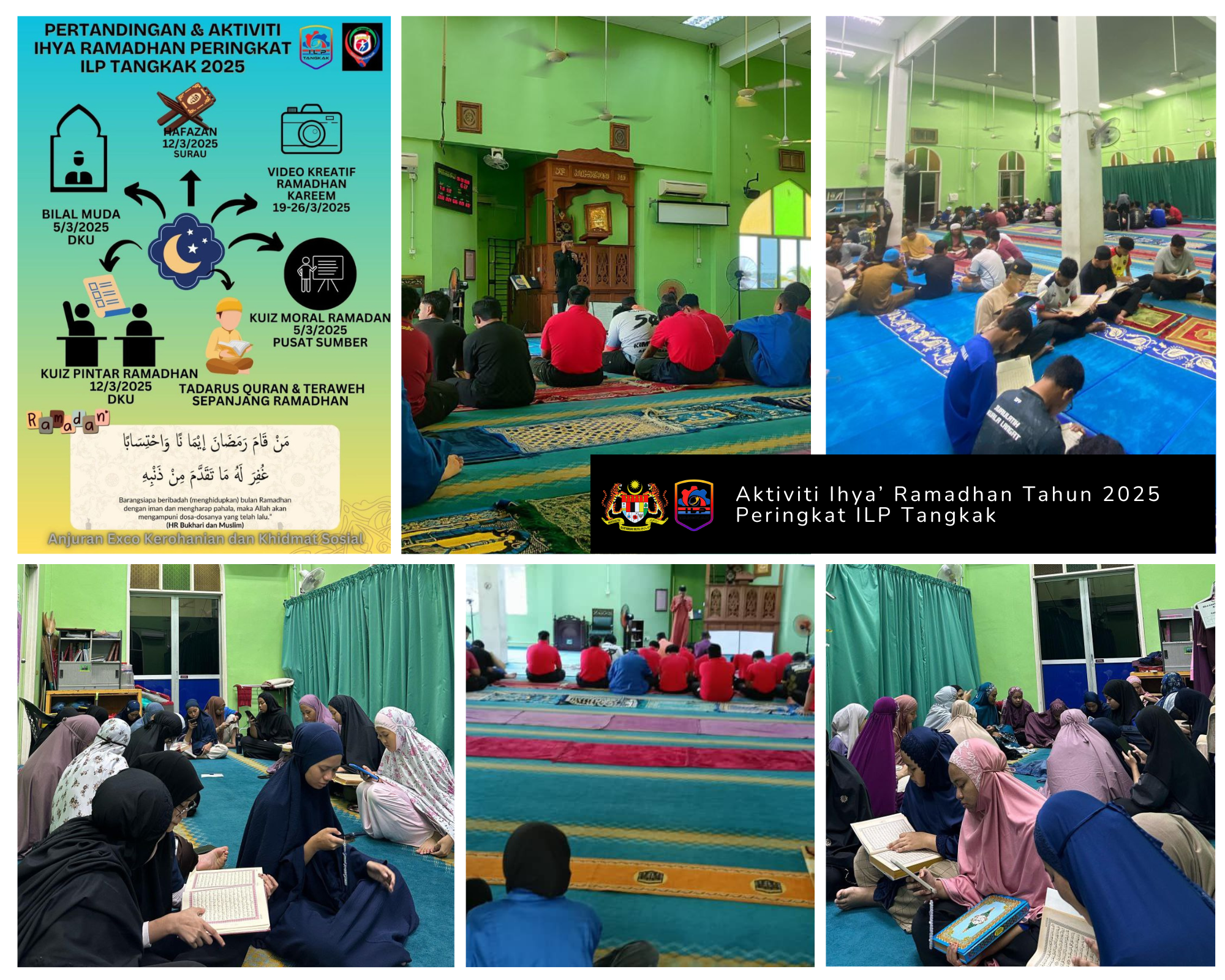Majlis Perwakilan Pelajar ILP Tangkak melalui usaha Exco Kerohanian dan Khidmat Sosial akan dan telah melaksanakan beberapa aktiviti dan pertandingan bagi mengimarahkan Bulan Ramadhan di kalangan para pelajar ILP Tangkak.