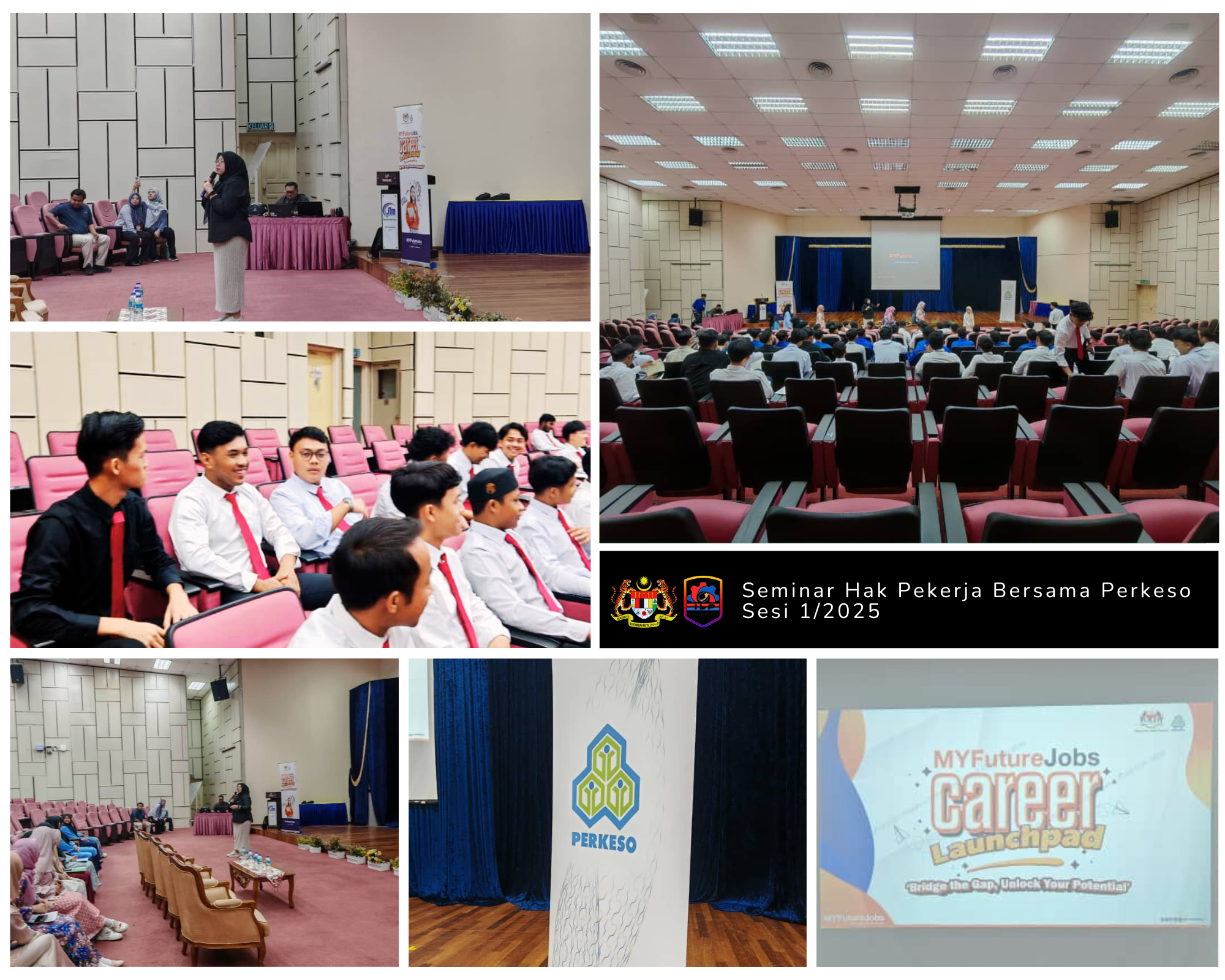 9 Mei 2025 - Bahagian Khidmat Sokongan Kerjaya dan Komuniti (CESS) & Bahagian Pengurusan Psikologi ILP Tangkak telah berkerjasama dengan PERKESO MUAR menganjurkan Seminar Hak Pekerja Bersama Perkeso kepda Pelajar Semester Akhir sesi 1/2025.