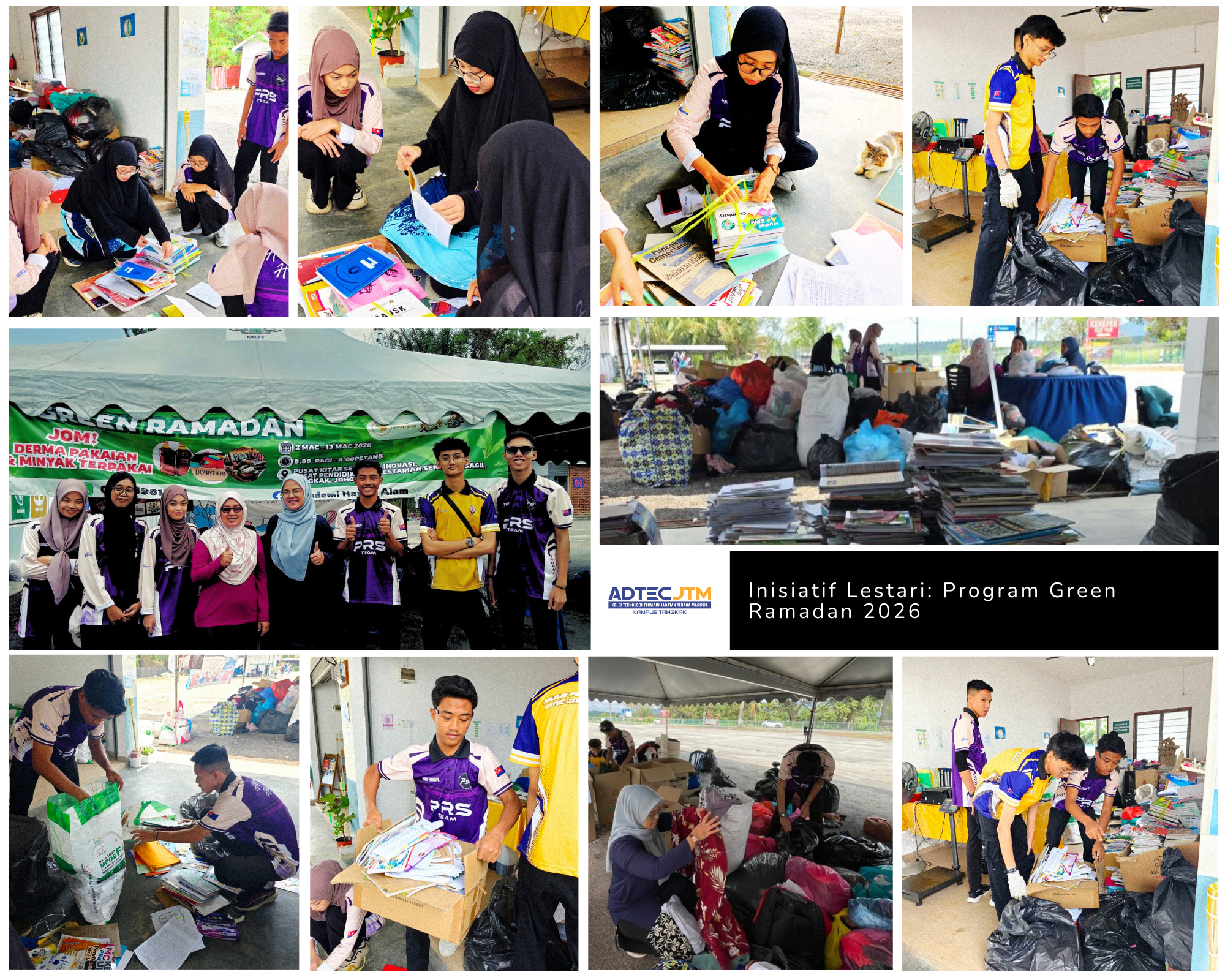 Sepanjang bulan Ramadan ini, ADTEC JTM Kampus Tangkak melalui Pasukan ESG dengan kerjasama Pertubuhan Hayati Alam, Majlis Daerah Tangkak telah menjayakan program Green Ramadan 2026 di Pusat Kitar Semula Sagil, Tangkak.