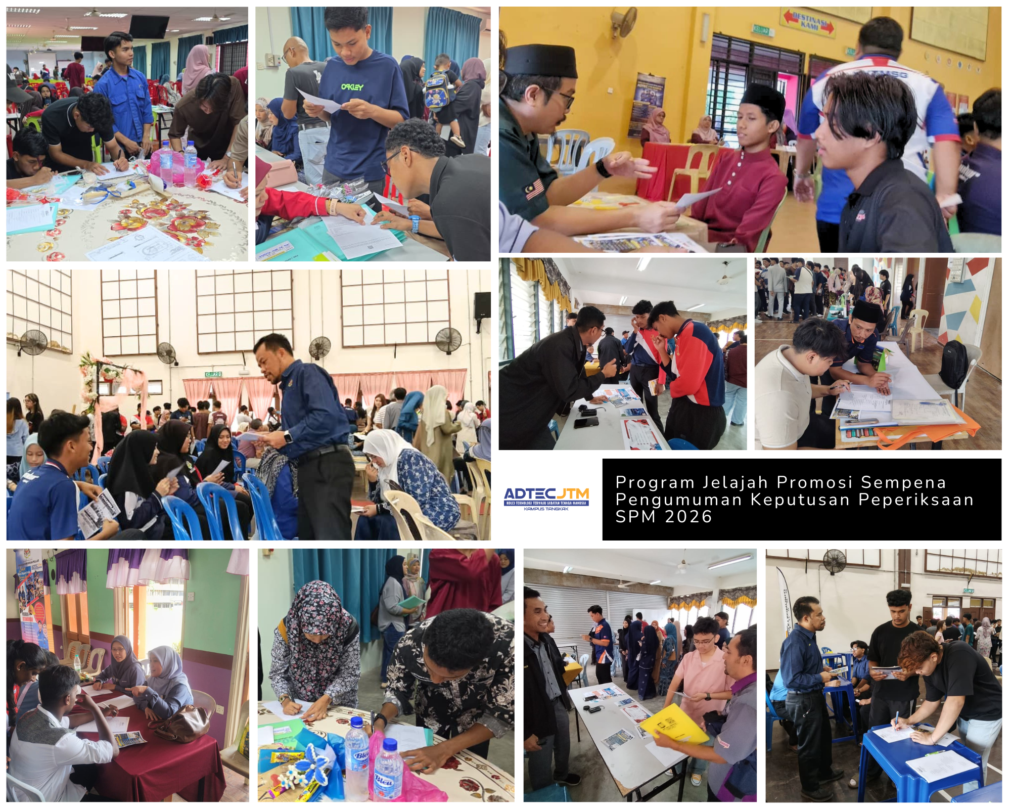 Sorotan eksklusif sepanjang Program Jelajah Promosi Jom Masuk ADTEC JTM Kampus Tangkak yang telah berlangsung pada 31 Mac 2026 dengan penuh komitmen dan dedikasi, bersempena Pengumuman Keputusan Peperiksaan SPM 2025.